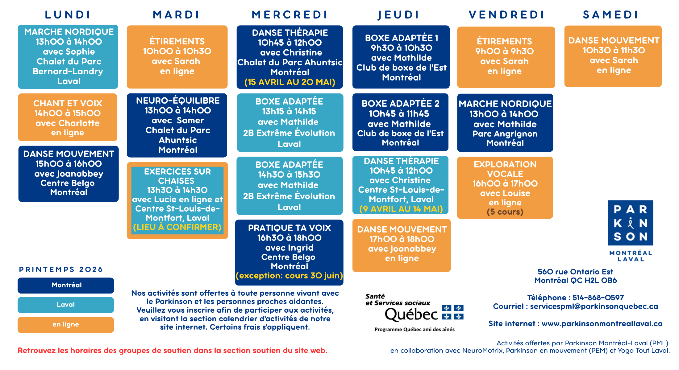 Détails et inscriptions : servicespml@parkinsonquebec.ca / 514-868-0597 poste 3